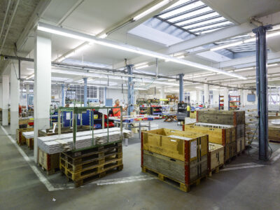 verschiedene Produktionshallen und einen Maschinenpark für die