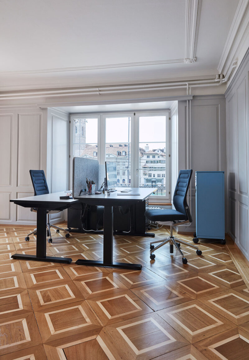 Zentral in der Altstadt von Zürich, an ehrwürdiger Lage im 1. Stock des über 800-jährigen Wettingerhauses, liegt der Office Showroom von Embru direkt über der Limmat. Auf rund 200 m² präsentieren wir hier Neuheiten zu Büroeinrichtungen und interaktiven Workshop-Szenarien.